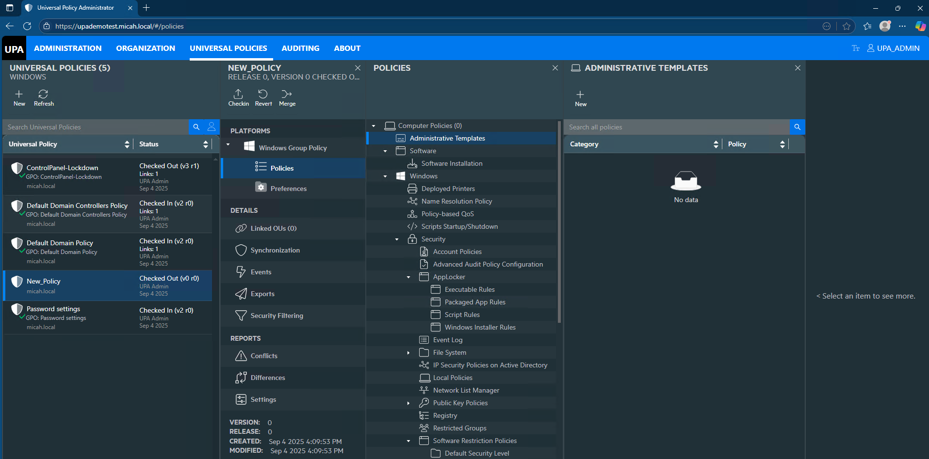 - Select a Universal Policy and click Checkout (if not checked out already).