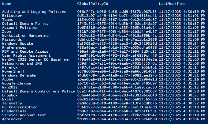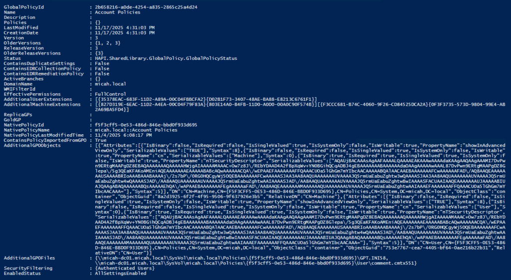 - Falls back to client-side Get-UniversalPolicy -AllDetails if needed